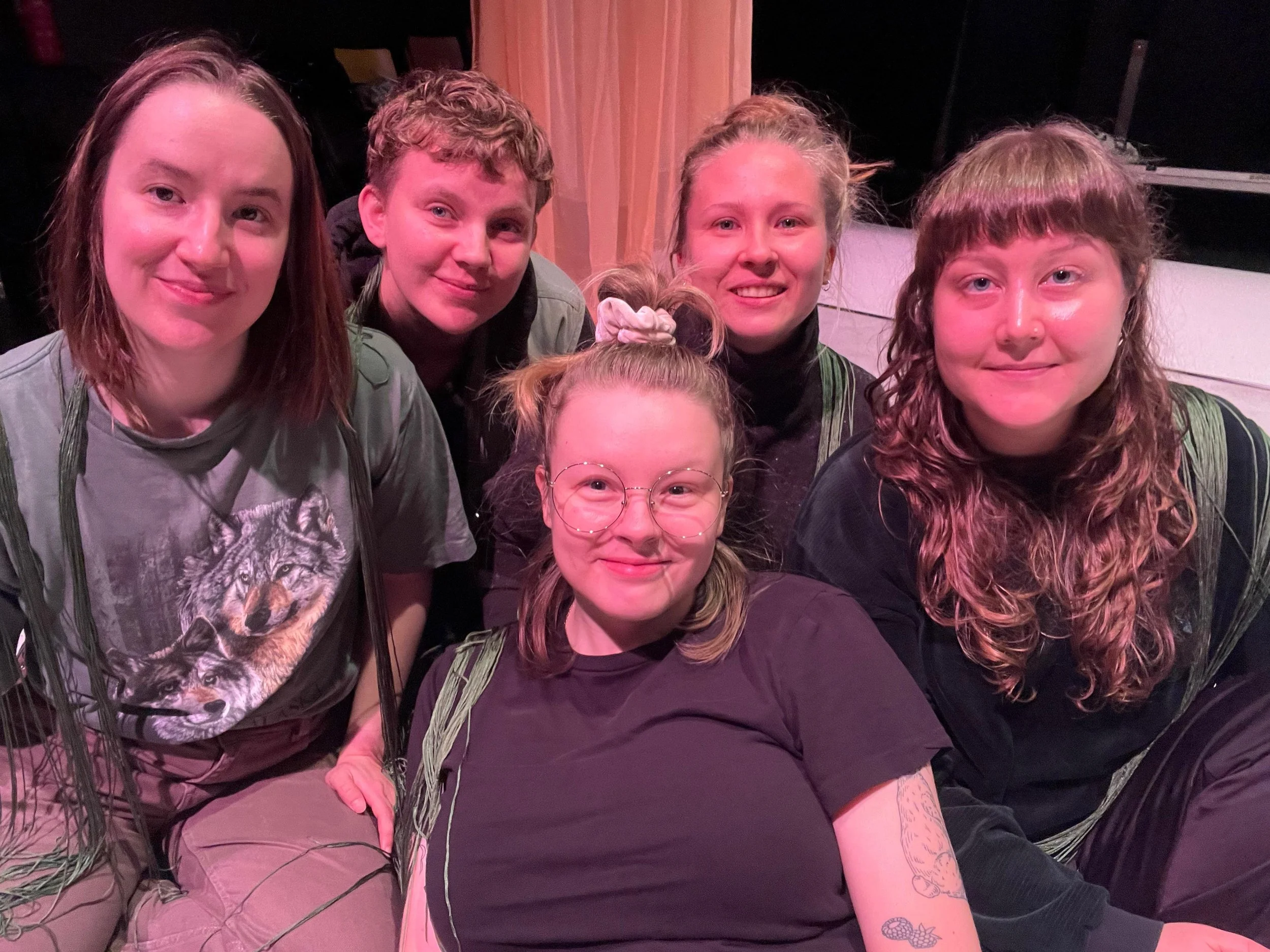 Haastattelimme tyttörakkauszine -esitysinstaallaation työryhmää Iida Hägglundia, Helka Saariniemeä, Jenni Räsästä, Vilma Vantolaa ja Eeva-Maaria Halosta. tyttörakkauszine esitetään Mad Housen näyttämöllä 1.–11.10.2025.